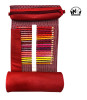 جامدادی رولی چرمی طراحی شیک و کاربردی.... متریال: ترکیب چرم با کیفیت و پارچه ی کتان ترک و مقاوم .... تعداد : 60 عدد... ابعاد : رنگ : قرمز عنابی ... برند : لونا... ویژگیها:.... طراحی رولی برای حمل آسان و دسترسی .... دارای یک عدد جامدادی تک زیپ متحرک داخل هر محصول، مناسب برای تراش ، پاکن ، فلش و اقلام ریز.... مناسب برای دانشآموزان، هنرمندان، طراحان و علاقهمندان به نظم در لوازم تحریر و هنری....